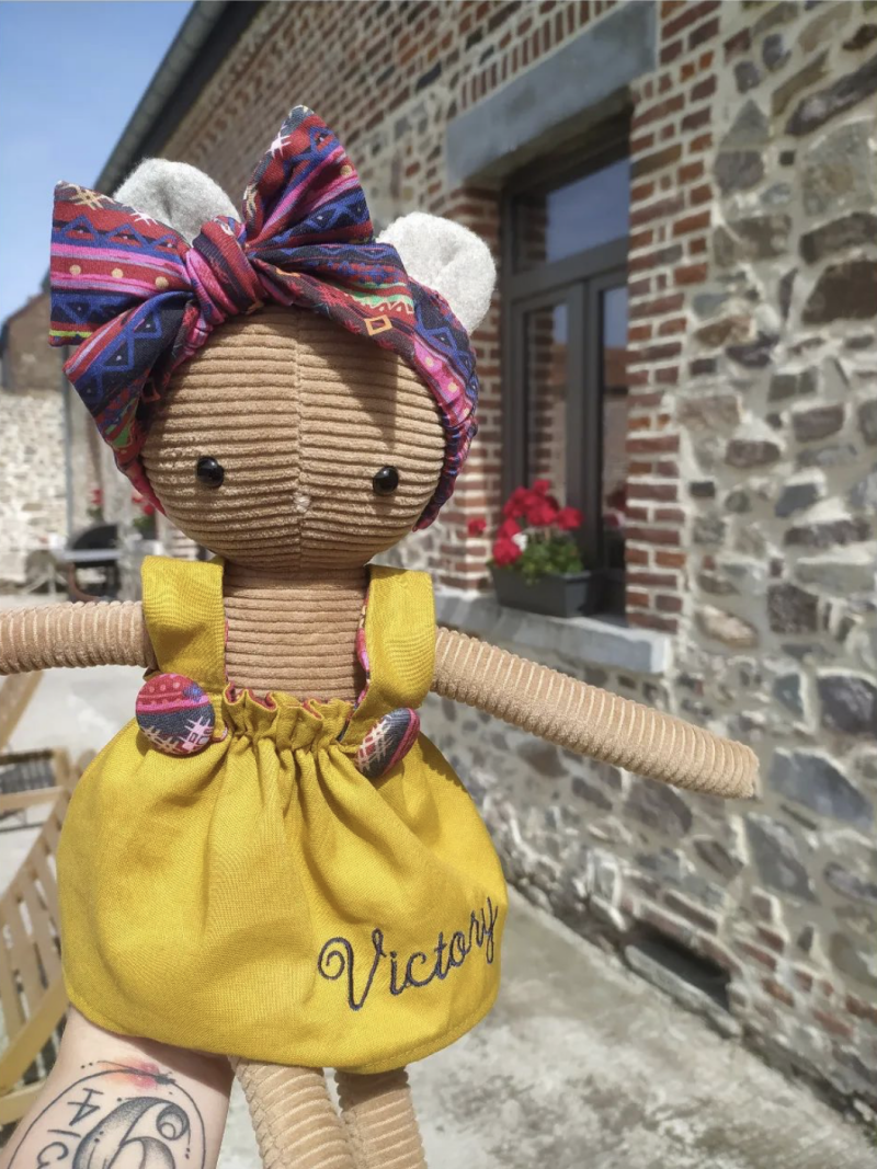 Chaque peluche est fournie avec une petite garde-robe qui peut s'agrandir par après. Tous les vêtements sont personnalisables avec la broderie du prénom de votre enfant.